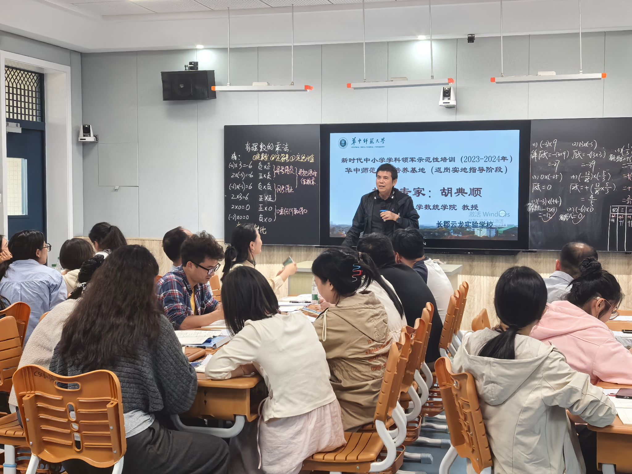 9月26日上午,教育部新时代中小学学科领军教师示范性培训bv伟德体育斯洛克培养基地“专家送教报告”活动在长郡双语实验中学举行。我校数统学院教授、数学教育教研室主任胡典顺作了题为《基于数学学科核心素养的课标理解、教材分析与教学实践》的专题报告。教育部学科领军教师、长郡双语教育共同体—一长郡双语谷山实验中学、长郡双语清湘实验学校、长郡双语星沙学校、长郡双语白石湖实验中学、永兴县文郡文昌学校、开福区第一中学等学校数学教师参加。校长黄斌致辞,代表学校向主讲专家胡典顺教授一行表示热烈欢迎和诚挚感谢。本次活动旨在深化对数学学科核心素养的理解,凝聚共识、共探新课标背景下的教学改革路径。
