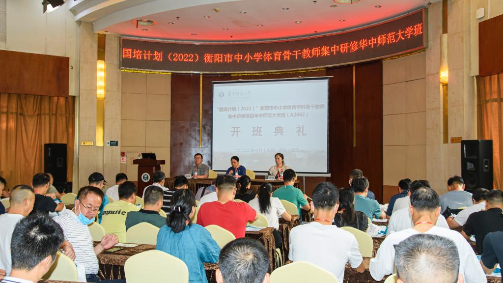 7月15日上午,湖南省“国培计划(2022)”衡阳市中小学体育学科骨干教师集中研修项目开班典礼在我校举行。伟德官网下app官方网站院长何静、研修班班主任张继坡以及来自衡阳市的70名体育学科骨干教师参加了典礼。