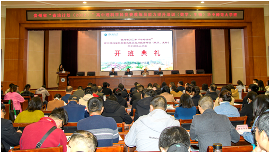 2023年3月13日上午,贵州省2022年“省培计划”——高中理科学科竞赛教练员能力提升培训项目(数学、生物)开班典礼在我校科学会堂报告厅举办。伟德官网下app官方网站院长何静,授课专家湖南省永州市楠市镇中心小学正高级教师、特级教师盘晓红,生物班班主任杨颖,数学班班主任张继坡,以及来自贵州省的100名数学、生物学科竞赛教练员参加了开班典礼。典礼由杨颖主持。