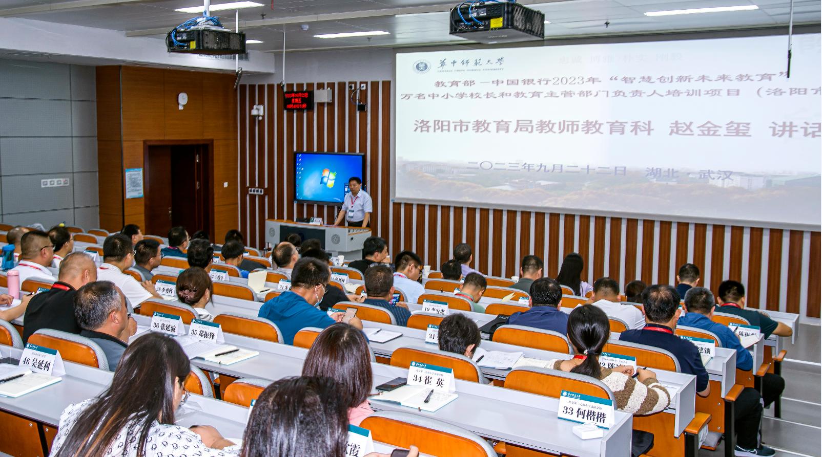 9月22日上午,教育部—中国银行2023年“智慧创新未来教育”万名中小学校长和教育主管部门负责人培训项目(洛阳市)开班典礼在我校南湖综合楼N207举行。伟德官网下app官方网站副院长吴军其、洛阳市教育局教师教育科科长赵金玺、中国银行洛阳分行个人数字金融部副主任李雯静、研修班班主任张继坡、杨颖,以及来自洛阳市的50名学员参加了开班典礼。典礼由杨颖主持。
