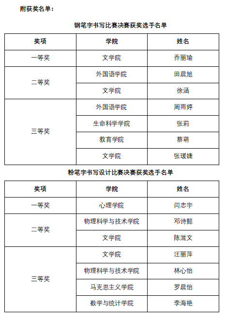 华大在线讯(记者 张瀚文 实习记者 韩宇玺 关国樑)10月15日,我校“第十四届师范生专业技能大赛·书写技能大赛”决赛在国家教师发展协同创新实验基地举行。通过各学院层层选拔的75名选手展开激烈角逐,心理学院2019级师范生闫志宇获粉笔字板书设计一等奖,文学院2019级师范生乔丽瑜获钢笔字一等奖。