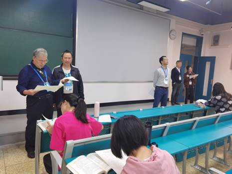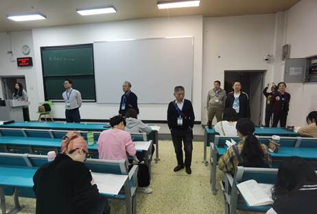 2023114日,我校教师教育必修课《班主任与班级管理》第一次结课考试圆满完成。此次考试在我校八号教学楼进行,共有11个课堂、756名修习该课程的2021级师范生参加,这是对他们顺利完成课程学习所获相关知识和能力的检测。本科生院副院长卢新元、教师教育学院副院长薛平军、本科生院负责教学调度的李思文老师以及学校教学督导组组长骆启桂教授和督导员刘德立教授一行赴现场巡考,学校“班主任与班级管理”教研室主任周东明教授、副主任汪丽梅副教授参加巡考。各位领导和督导员对考试的组织工作和试卷出题质量给予高度评价。